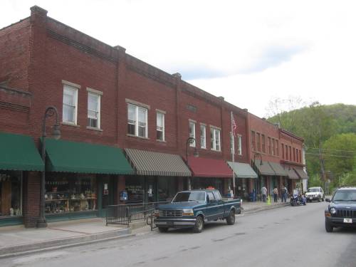 CR 120 traverses Bramwell's block-long downtown core, then takes a U-turn to head upstream along the south bank of the Bluestone River. It enters Virginia 4 kilometres from this point.