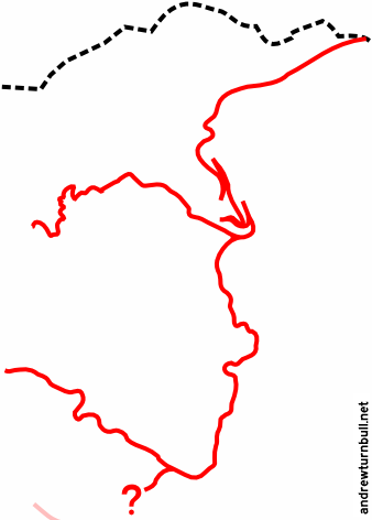 E: One kilometre west of the confluence (beyond a current campground site and waterfall), a branch of the line split off to the south along Marsh Fork. (Yes: Marsh Fork is a tributary of Mash Fork, and that's not a typo. Score one for confusion!)