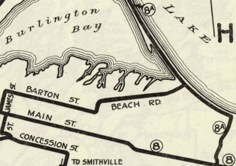 In Ontario Highway 8's earliest years, an alternate ("A") spur connected Stoney Creek to Burlington via Hamilton Beach.