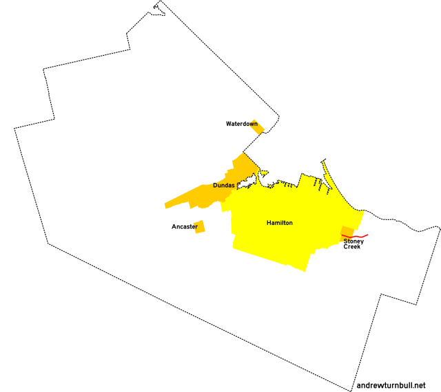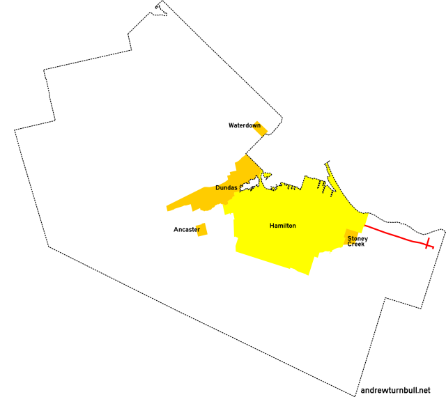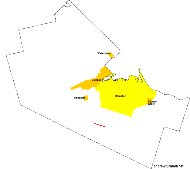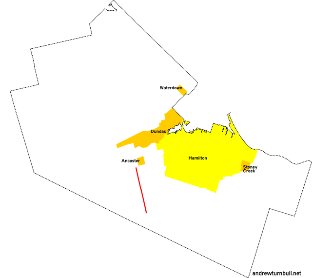 | (Shown above in pink.) | Governors Rd. | Ogilvie St., Dundas | Main St. (ON 8), Dundas | insignificant |
