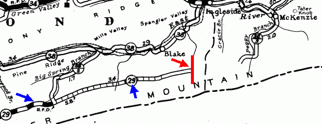 How far this extension extended differs from map to map, with the greatest extent shown on USGS topos of the early 20th century. On these, a primitive road literally runs off the edge of the map...as far east as Pigeon Creek, near Oakvale, to be precise!