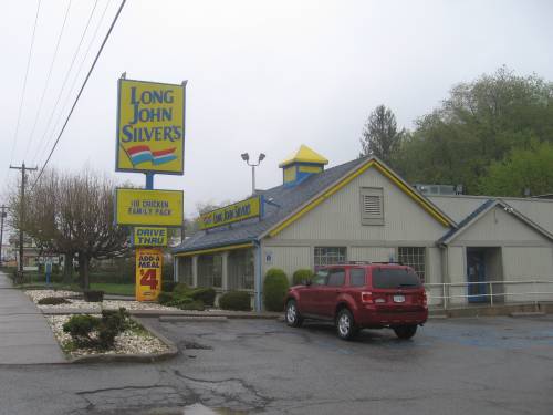 There are a fair number of quick-service retaurants on East Cumberland Road that hail to the era of WV 290 or even earlier, including this mercifully-unremodelled Dairy Queen and an only slightly-touched Long John Silver's Seafood Shoppe. The Dairy Queen is still open as of 2024 and still looks the part today, but the LJS has been demolished.